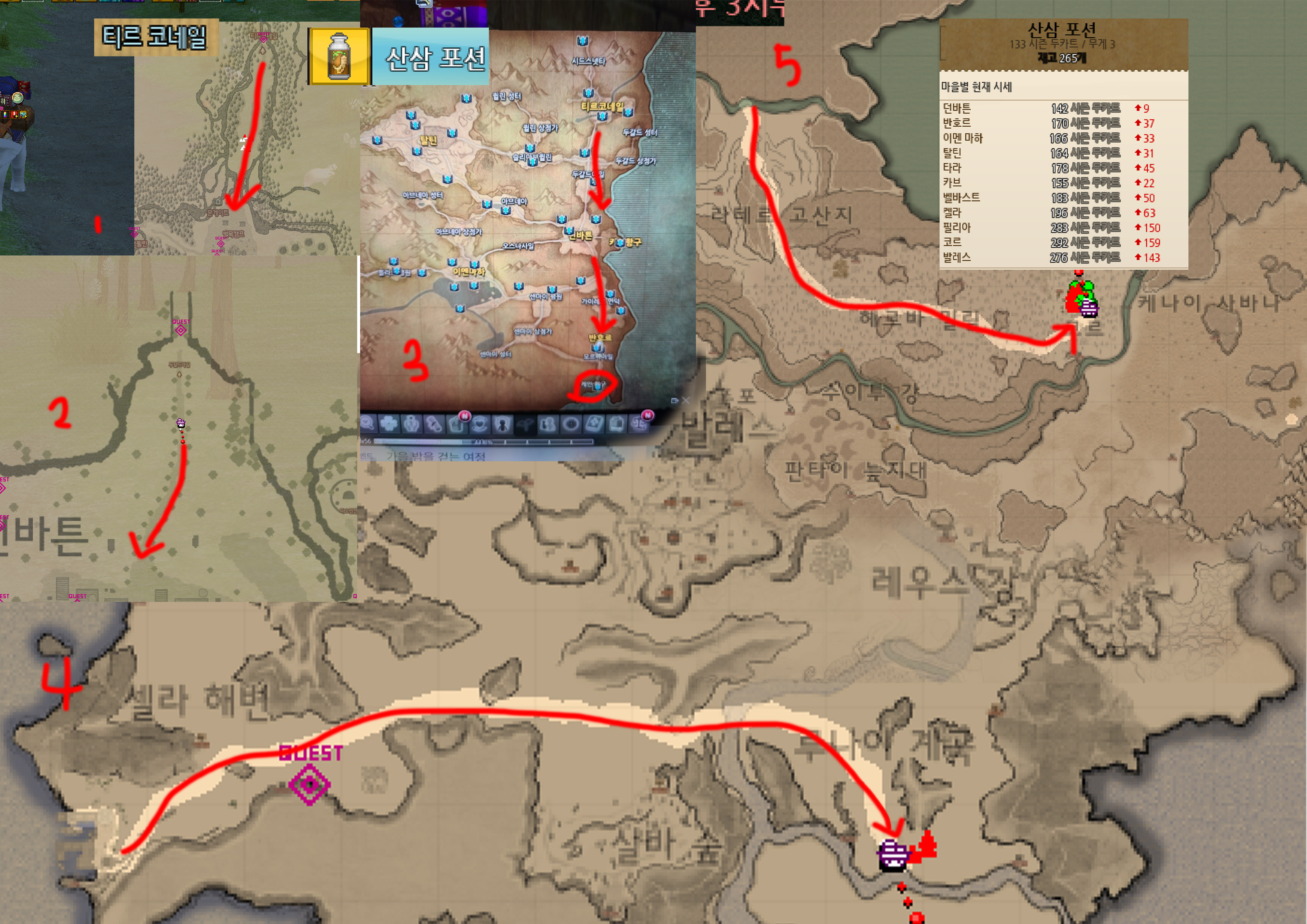 마비노기의 여러 콘텐츠 중에서 교역에 대하여 소개하겠습니다. 우선 교역은 상인이라는 재능이 있습니다. 상인 재능은 교역마스터리, 골드 스트라이크 두 가지 스킬을 가지고 있으며 교역마스터리는 교역을 하며 스킬 레벨을 쌓을 수 있습니다. 골드 스트라이크는 말 그대로 보유한 금화를 사용하는 스킬로 돈을 던져서 몬스터를 잡는 말 그대로 돈 버리는 스킬입니다. 현재 교역은 티르코네일, 던바튼, 반호르, 이 멘마하, 탈틴, 타라, 카브, 벨바스트, 켈라, 필리아, 코르, 발레스가 있습니다. 기본적인 교역은 등짐, 손수레, 마차, 코끼리가 있습니다. 교역 운송수단은 수단별로 획득방법이 상이합니다. 획득방법은 다음시간에 이야기해보겠습니다. 티르코네일에는 베이비포션, 다이어트포션, 코골이방지포션, 산삼포션, 러블리포션이 있습니다. 베이비포션과 다이어트포션은 신용레벨 1에 매입가능합니다. 물품을 선택하여 구매 후 가장 비싼 곳에 팔면 됩니다. 다만 거리가 멀수록 비싸지지만 시간이 소요되므로 감안하여 진행합니다. 산삼포션의 경우 신용레벨 5에 해제되어 교역 가능해집니다. 산삼포션을 티르코네일에서 구매했다면 저는 시간이 많이 남아 코르에 가져다 팔겠습니다. 그러면 꽤 짭짤한 수익이 생기게 됩니다. 산삼포션을 티르코네일에서 구매해서 던바튼을 거쳐 가이레흐 언덕을 지난 후 반호르를 지나서 케인항구로 갑니다. 케안 항구에서 셀라항구로 가는 배를 탑승합니다. 그리고 셀라항구에 도착하여 얼어있는 레우스 강을 지나서 루나이 계곡에서 얼음결정을 사용하여 지나갑니다. 루테르 고산지와 헤르바 밀림을 거쳐서 코르에 도착하여 교역물품을 판매합니다. 다만 산삼포션의 경우 셀라항구를 나와서 안전지대를 벗어나면 약탈단이 수시로 나타납니다. 그러므로 전방 주시 잘하면서 지나오면 쏠쏠한 금액을 벌 수 있습니다. 이렇게 시즌별 두카트를 모으다 보면 랭킹에 따라서 보상을 얻을 수도 있습니다. 약탈단을 덜 만나게 하는 사탕, 교역이동속도 증가포션을 얻을 수도 있습니다.